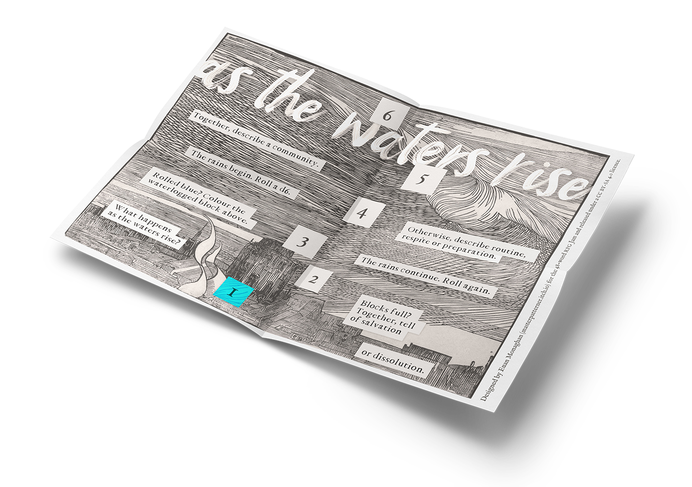 In this narrative game, made for the 48-word RPG Jam, players work together to tell the story of a community as it faces ever more dramatic environmental disruption.